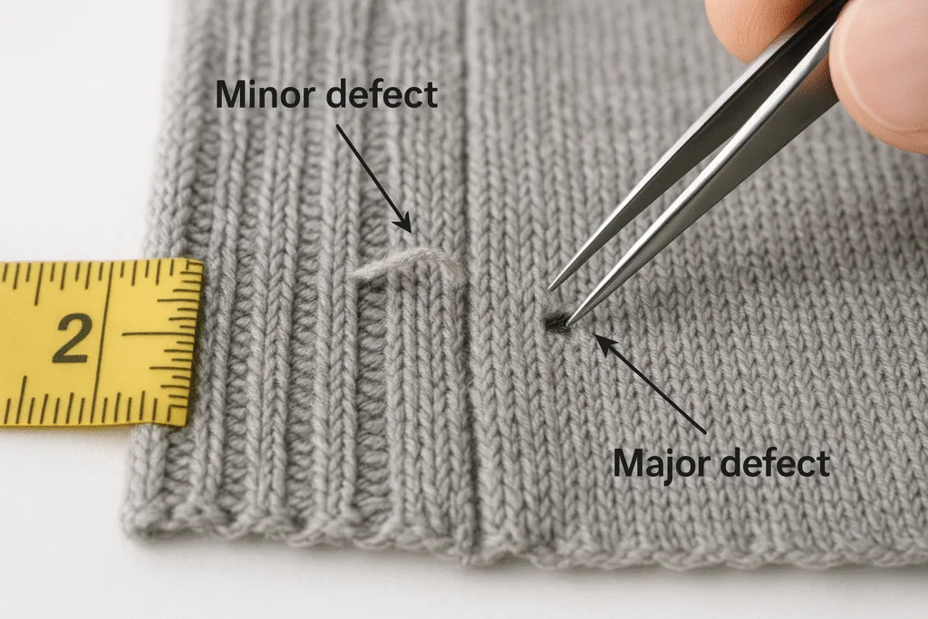 - Major Defects: Defects reducing saleability or violating specs (e.g., broken seams, open holes, wrong size, severe crooked prints). Typical AQL: 2.5 or 1.5.