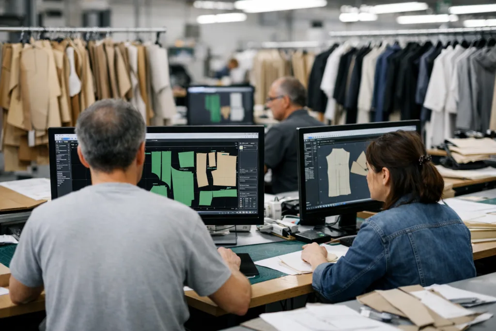 At this stage, pattern makers turn sketches into real garments. Digital tools like Gerber and CLO3D—covered in digital pattern making CAD systems—speed up refinement and reduce mistakes. Factories create prototypes to test design viability and fit.