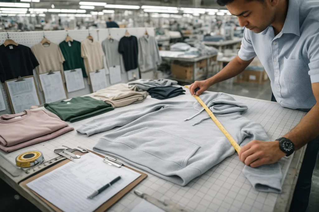 - Check measurements, fabric, construction, trims, and branding for compliance.