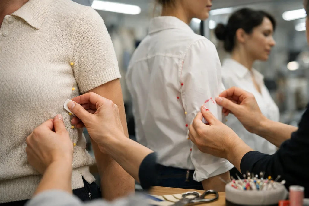 Fit reviews involve designers, technicians, production managers, and model feedback. The communication workflow must ensure that corrections, rationale, and priorities are transmitted from showroom to pattern room without loss of detail.