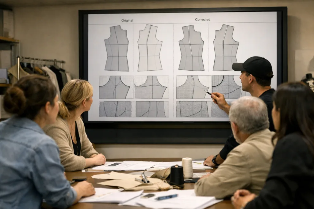 Update your tech pack whenever you communicate pattern corrections. A well-maintained tech pack acts as the factory’s single source of truth, minimizing information gaps and production errors. For steps to update after sampling reviews, refer to 10 Critical Steps for Seamlessly Updating Your Tech Pack After Sampling Reviews.