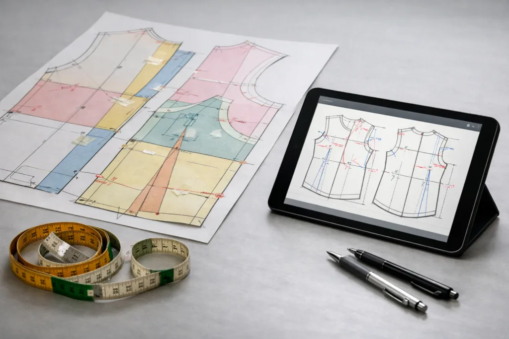 Software like CLO3D, Gerber, or Lectra allows real-time pattern visualization and precise communication. Sharing editable files with tracked changes or layer comments helps factories understand complex corrections without back-and-forth emails. For transformation insights, see Digital Pattern Making with CAD Systems.