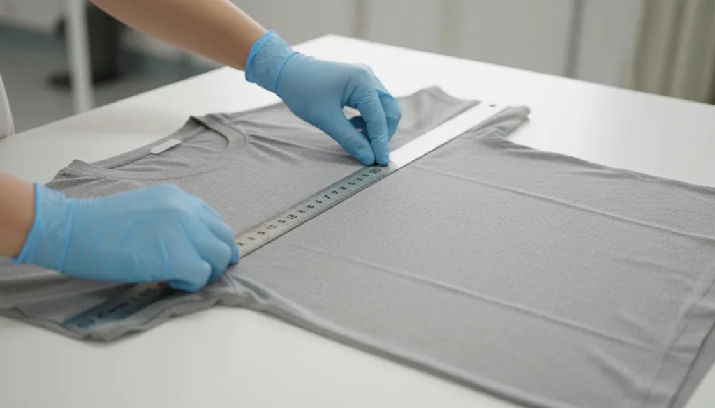 • Shirt body/sleeve length must be post-wash. Record shrinkage levels—e.g., 3–4% for 100% cotton.
